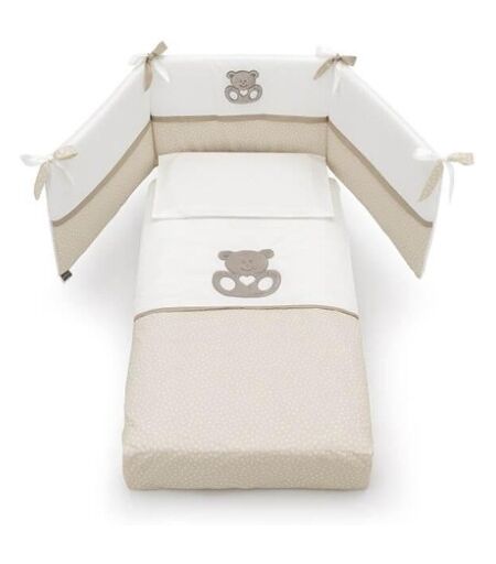 Rivestimento Tessile Erbesi Charly Il rivestimento Tessile Charly comprende: piumone sfilabile, paracolpi e federa. Realizzato in sincronia con tutto il corredo della cameretta, presenta un simpatico orsetto con dettagli che variano nella colorazione (Tortora o Grigio). Dimensioni: L77 x P 53 x H 20 ...
