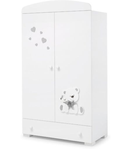 L'armadio è capiente ed elegante, utile per riporre con comodità ogni capo d'abbigliamento e necessità. Dotato di un ampio cassetto nella parte inferiore, si compone di due ante che racchiudono lo spazio interno.Realizzato in truciolare certificato E1 a bassa emissione di formaldeide. Rivestito in PVC, e dipinto con vernici atossiche secondo le più recenti norme europee. Dimensioni: profondità 55 cm x larghezza 100 cm x altezza 177 cm ...