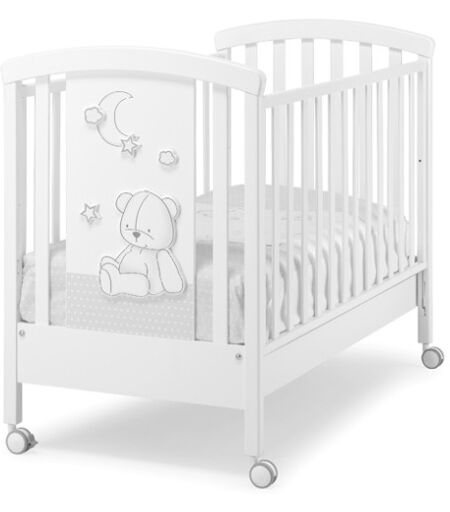 Lettino Erbesi Stella Il lettino Erbesi Stella e un pezzo unico e nuovo della collezione Erbesi. Dotato di originali decorazioni e l'elemento che completa il design della cameretta del piccolo. Realizzato in legno di faggio, con rete ortopedica, spondine regolabili per facilitare la presa del bambino e kit doppia altezza della rete. E' dotato di un ampio cassetto e ruote piroettanti. Dimensioni e Peso: L 131,5 P 72,5 H 104 Peso 27 Kg ...