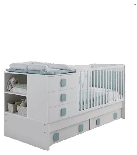 La composizione Crib Easy di Erbesi ha la possibilità di trasformarsi da lettino per il nostro piccolo fino a 2 anni a letto singolo per adulti con cassettiera e mini scrivania per poterlo usare durante tutta la fase di crescita del nostro bambino. Entrambe le opzioni sono realizzate in legno di faggio, in diverse colorazioni e dotate di un cassettone in multistrato scorrevole a terra su ruote. Dimensioni: Lettino L 206 x P 93 x H 102 Letto Singolo L 206 x P 93 x H 102 Cassettiera L 58 x P 38 x H 72 Scrivania L 142 x P 67 x H 90 ...