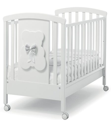 Lettino con cassetto, struttura in legno di faggio. Cassetto con scorrimento su guide di metallo con un nuovo meccanismo per una facile e veloce regolazione. Piedini con rotelline a scomparsa che permettono lo scivolamento del letto in avanti e indietro. Dimensioni del lettino: 131,5 x 72,5 x 104h cm. ...
