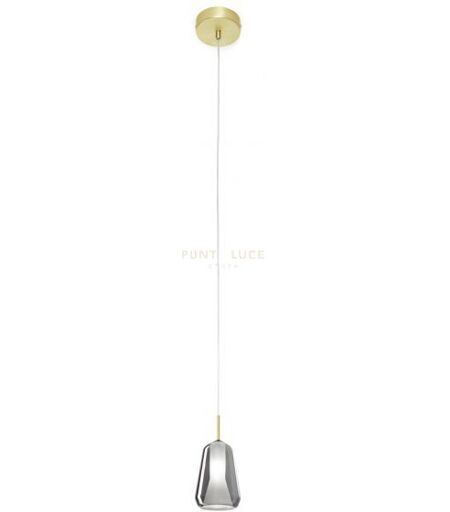 Lampada A Sospensione 1 Luce Invetro Borosilicato Color Fumã¨, Diametro Cm 14,Altezza Cm 20. Stelo E Rosone(Diametro Cm 12) In Oro Spazzolato.Cavo Di Alimentazione Trasparente 200 Cm. Attacco G9 Ø21xh80mm ...
