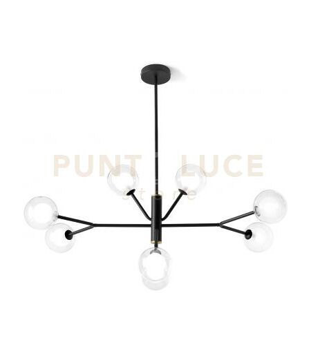 Sospensione A 8 Luciin Vetro Borosilicato Trasparentecon Sfera Interna Satinata.Montatura In Metalloverniciato Nero Con Particolarein Oro Spazzolato.La Lampada è Dotata Di Due Tubiutilizzabili Per Alzare E Abbassarela Lampada Stessa. Attacco G9 Ø20xh70mm ...