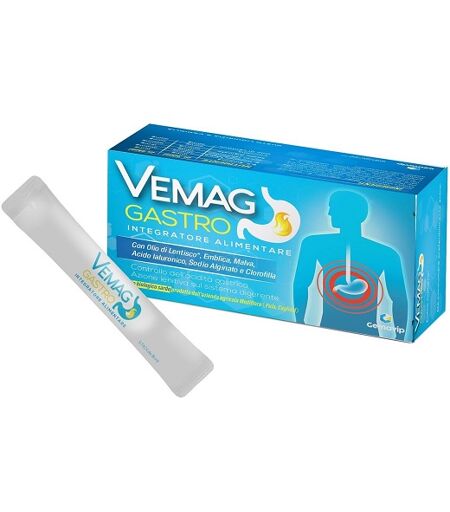 VEMAG GASTRO - Descrizione Integratore alimentare a base di Emblica officinale che favorisce il controllo dell'acidità gastrica e la Malva che svolge un'azione emolliente e lenitiva sul sistema digerente. Sodio jaluronato, Sodio alginato, Olio di lentisco e Clorofilla arricchiscono la formulazione.… ...