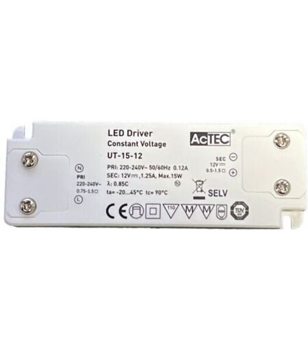 ACTEC - Alimentatore Trasformatore Ultra Slim 15W 12V 1.25A Tensione Costante 103X36X16 mm