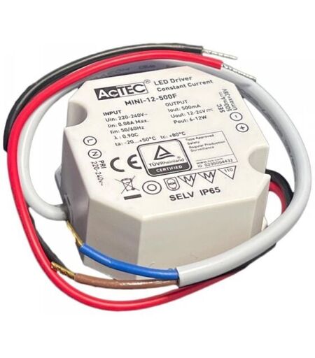 ACTEC Mini Led Driver IP65 Corrente Costante 500mA 12V-24V 12W 50X48X24mm