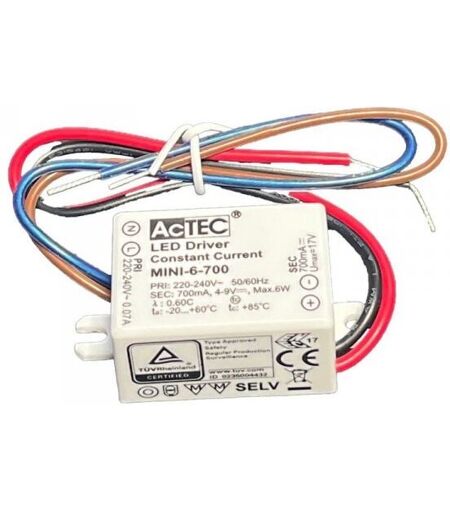 ACTEC Mini Led Driver IP65 Corrente Costante 700mA 4V-9VDC 6W 48X38X21mm