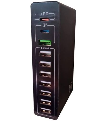 ZOREI - Alimentatore Caricabatterie usb da Muro 65W 2 usb Type c pd 1 usb QC3,0 7 usb Smart