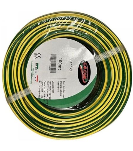 ZOREI 100mt Cavo Elettrico FS17 450/750V Unipolare 1X4mm Colore Giallo Verde Made In Italy