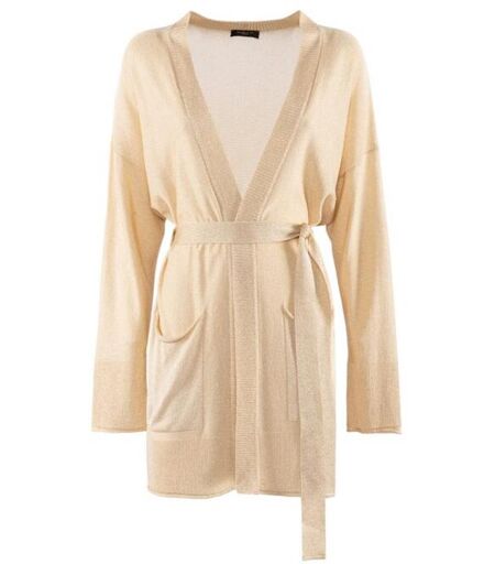 Cardigan in maglia lurex fine, caratterizzato da un design minimal e una texture morbida e avvolgente. La vestibilita rilassata lo rende perfetto per completare look sofisticati o casual-chic, ideale per garantire comfort e stile in ogni occasione. Abbinabile a pantaloni fluidi o abiti leggeri per un outfit raffinato e senza tempo.-88% ACETATO-6% POLIESTERE-6% POLIAMMIDE ...