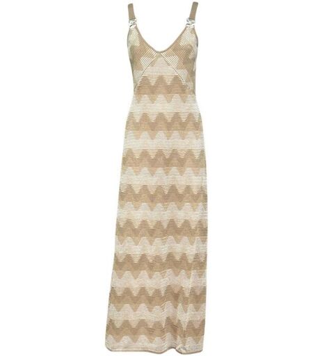 Abito lungo in maglia con anelli in metallo sulle spalline e scollo a V, caratterizzato da un effetto onda multicolor che crea un gioco di tonalita dinamico e moderno. Perfetto per chi cerca un look originale e ricercato, un capo elegante che unisce comfort e stile contemporaneo.75% VISCOSA25% POLIESTERE ...