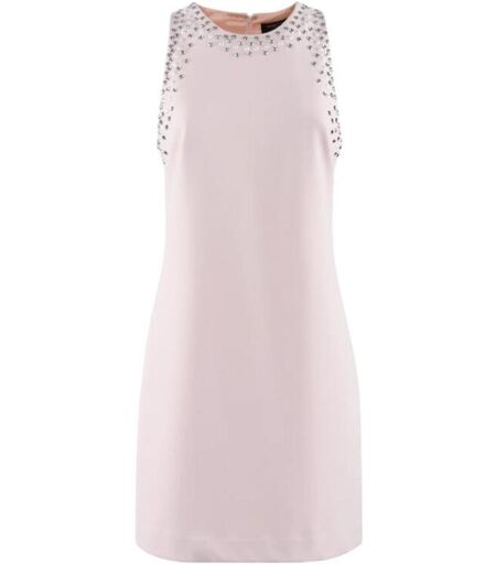 Elegante abito corto in cady con uno scollo all'americana che conferisce un tocco di raffinatezza. Le borchiette applicate sullo scollo aggiungono un tocco di eleganza e stile a questo capo impeccabile.92% POLIESTERE8% ELASTAN ...