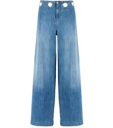 Denim wide leg in tessuto comfort, caratterizzati da eleganti vele dorate in vita che aggiungono un tocco di classe. La vestibilita ampia garantisce comodita e stile, perfetti per un look casual ma ricercato. Un capo versatile che unisce praticita e tendenze.-98% COTONE-2% ELASTAN ...