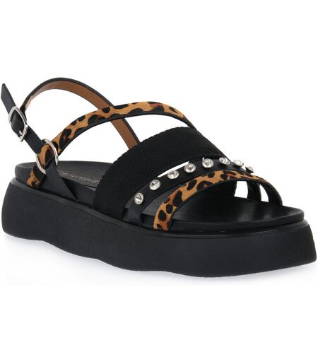 sandali cafe noir multimateriale con zeppa di media altezza suola in gomma leggera e cinturino regolabile. colore: nero maculato. ...