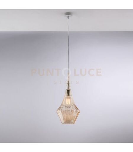 Bonetti Illumina Sospensione In Ferro Con Vetro Ambra Pyrex 1 Luce Zeus