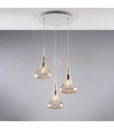 Bonetti Illumina Sospensione In Ferro Con Vetri Ambra Pyrex 3 Luci Nemesi
