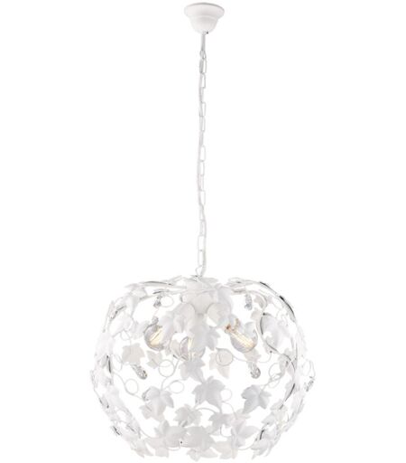 BONETTI ILLUMINA Lampadario Shabby Edera 3 Luci Ferro Battuto Bianco Con Foglie E Cristalli