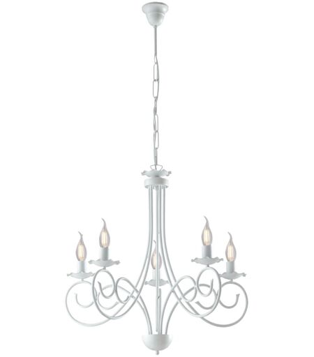 Collezione Alma FERRO BATTUTO VERSO IL ROMANTICISMO DELLO STILE PROVENZALE Lampadario in ferro battuto laccato bianco con decorazione effetto shabby chic a 5 braccia. . Lo stile provenzale country, color bianco shabby lo rende ideale per illuminare cucine, saloni e camere da letto. La struttura del lampadario è realizzata in ferro sagomato, con portalampada a vista effetto candela. Disponibile anche nella versione nero e rame. Realizzato interamente a mano da mastri artigiani, 100% Made in Italy. ...