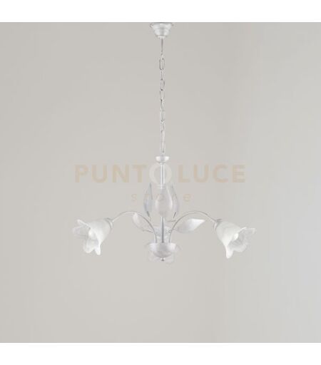 Lampadario In Ferro Laccato Bianco Con Decorazione Argento Antico E Diffusori In Vetro Alabastro Bianchi 3 Luci ...