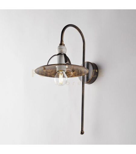 Applique In Ferro Laccato Marrone Con Decorazione Oro Antico E Rifiniture Bianche 1 Luce ...