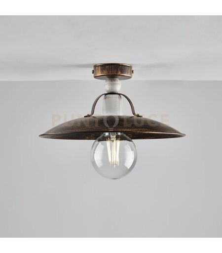 Plafoniera In Ferro Laccato Marrone Con Decorazione Oro Antico E Rifiniture Bianche 1 Luce ...