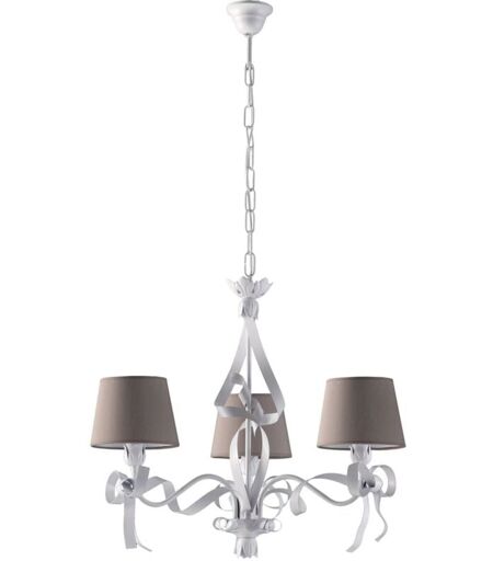 BONETTI ILLUMINA Lampadario Shabby Chic Lucy Bianco 3 Luci Paralumi Tortora