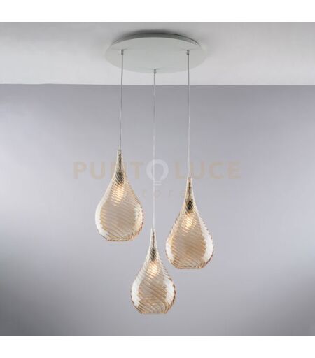 Bonetti Illumina Sospensione In Ferro Con Vetri Ambra Pyrex 3 Luci Pluvia