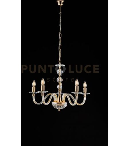 Bonetti Illumina Lampadario In Oro Con Vetro Trasparente E Strass 5 Luci Ruben