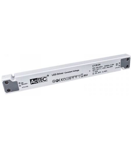 Un Alimentatore Trasformatore CV Voltaggio Costante Professionale Ultra Slim e Sottile Misura 250mm x 30mm x 16,5mm Marca "ACTEC" Modello LT-30-24 24V 30W 1.25A Ideale per Striscia Led e Profilato Alluminio NON Impermeabile IP20 Solo Per Uso Interno ...