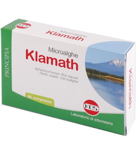 KOS Klamath - Descrizione Integratore alimentare a base di estratto secco di alghe Klamath, aiuta a mantenere il normale tono dell'umore. Ingredienti Microalga Klamath (Aphanizomenon flos - aquae [AFA] Ralfs ex Born. et Flah.), Cellulosa microcristallina, Edulcorante: Sorbitolo; olio di Ricino idro… ...