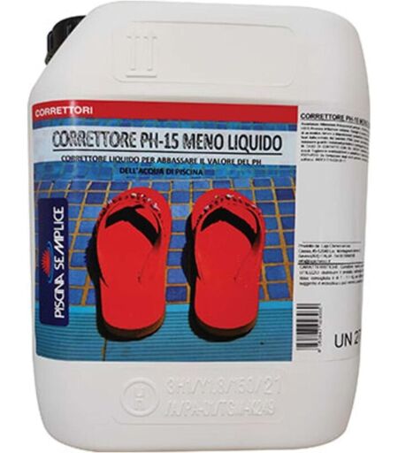 Prodotto idoneo alla vendita al pubblico rif. Reg. 1148/2019 relativo all'immissione sul mercato e all'uso di precursori di esplosivi. Correttore liquido specifico per abbassare il valore del pH in acque di piscina. Ha le seguenti caratteristiche: effetto rapido, esente da cloruri, massimizza l'azione dei prodotti sanificanti (pH compresi 7,2-7,6), effetto tampone. Dose di utilizzo: circa Gr. 900-1100 per abbassare il valore del pH di 0,1 unità ogni 100 metri cubi di acqua. ...