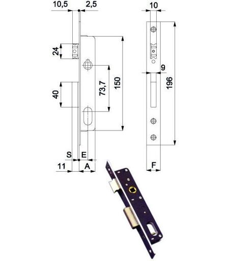 Serratura zincata infilare alluminio montanti Catenaccio - Scrocco reversibile - Quadro mm 8 Scrocco lega nichelata antirumore 1 mandata - Misura scatola mm 31x150 Misura frontale inox 16x196 - Entrata 20 Cilindro non incluso ...