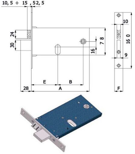 Serratura zincata infilare alluminio fasce Catenaccio - Scrocco reversibile - Quadro mm 8 Scrocco lega nichelata antirumore 2 mandate - Misura scatola mm 153x78 Misura frontale inox 16x160/22x160 - Entrata 70 Cilindro non incluso ...