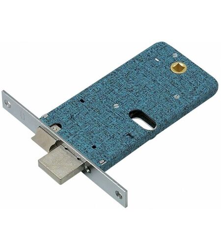 Serratura per fasce. Catenaccio e scrocco, 3 mandate, quadro maniglia in ottone, cilindro, 3 chiavi, scatole mm. 153x78. Art. 770 ...