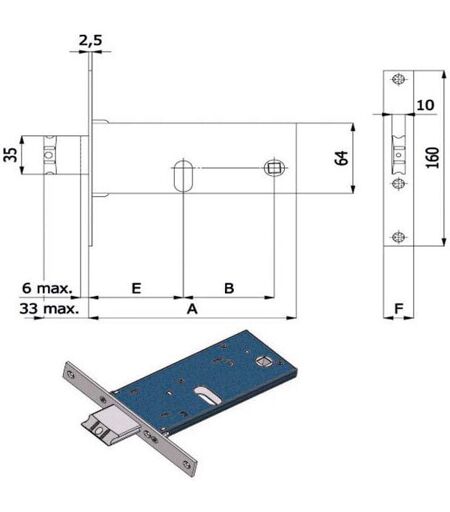 Serratura zincata infilare alluminio fasce Scrocco catenaccio incorporato reversibile Q8 Scrocco lega nichelata antirumore 2 mandate - Misura scatolamm 163x64 Misura frontale inox 16x160/22x160 - Entrata 80 Cilindro non incluso ...