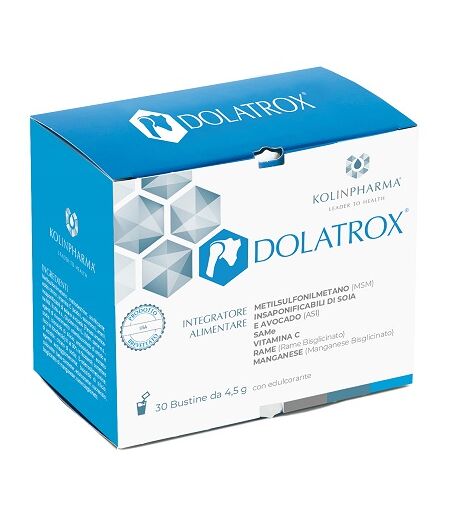 DOLATROX - Descrizione Integratori per il benessere delle cartilagini, delle articolazioni e delle ossa. - La vitamina C contribuisce alla formazione del collagene per la normale funzione delle cartilagini. - Il rame e il manganese contribuiscono al mantenimento dei tessuti connettivi normali. - In… ...