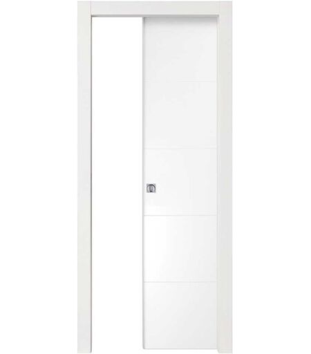 La Porta Da Interno Scorrevole Interno Muro Iris New Contract Di Effebiquattro Rappresenta Una Soluzione Pratica E Funzionale Per Ottimizzare Gli Spazi. Il Suo Sistema A Scomparsa Permette Di Sfruttare Al Meglio L'ambiente, Eliminando L'ingombro Dell'anta A Battente. Questa Porta È Caratterizzata Da Un'anta Tamburata Con Un Efficace Riempimento In Truciolare Forato Flexboard Fonoassorbente A 28.5 Db, Che Contribuisce A Ridurre La Trasmissione Dei Rumori Tra Gli Ambienti, Assicurando Maggiore Privacy E Comfort Acustico. Il Perimetro In Abete Massello Conferisce Robustezza E Stabilità Alla Struttura. La Finitura Pantografata Incisa Con Quattro Fresate Orizzontali Dona Un Tocco Di Sobria Eleganza All'anta, Adattandosi Facilmente A Diversi Stili Di Arredamento. Il Colore Bianco Seta Ral 9016 Offre Luminosità E Si Integra Con Armonia In Qualsiasi Contesto. Il Telaio E I Coprifili, Inclusi Nella Fornitura, Sono Realizzati In Legno E Rivestiti In Laminato. I Coprifili Sono Di Tipo Telescopico, Adatti Per Pareti Con Spessore Compreso Tra 10 E 12 Cm, Agevolando L'installazione E Garantendo Una Finitura Precisa. La Porta È Reversibile, Offrendo Flessibilità Nella Scelta Del Senso Di Apertura. La Porta Scorrevole Iris New Contract È Un Prodotto Made In Italy, Che Garantisce Attenzione Ai Dettagli E Cura Nella Realizzazione. ...