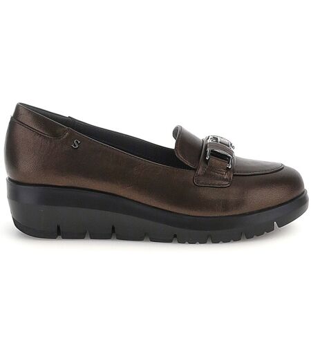 Mocassini donna plume 37 in nappa laminata stonefly. Impreziosito da accessorio sulla fascetta. Interni in pelle e leggero fondo zeppa 5cm. ...