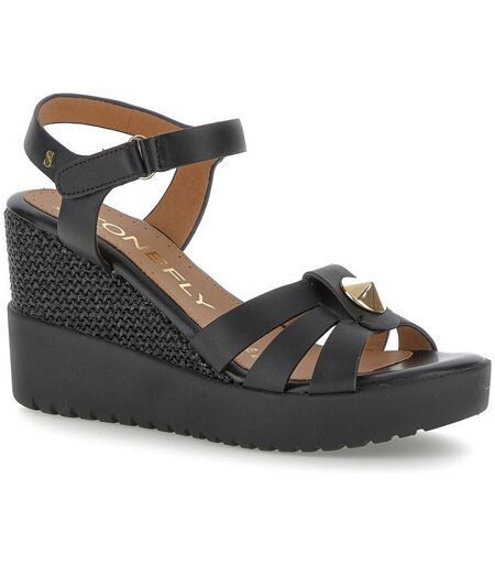 Sandali donna con zeppa e borchia oro stonefly con cinturino regolabile. Fodera e sottopiede in pelle, zeppa con inserto in rafia 9 cm. ...