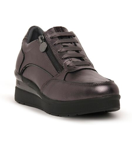 sneakers casual da donna in pelle laminata comode e casual con una tomaia ricca di dettagli che combina diverse texture questo modello stringato e reso piu pratico e confortevole dalla cerniera laterale che consente una calzata facile e veloce. ...