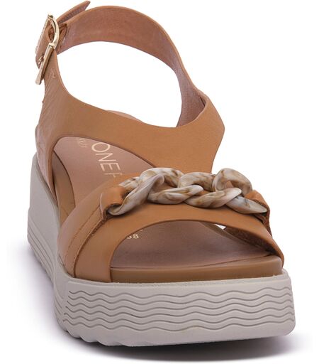 sandalo da donna con zeppa comoda realizzato in pelle chic e comodo perfetto per tutti i tuoi outfit estivi dai piu casual ai piu eleganti. aˆ impreziosito dal dettaglio dell'accessorio a catena tono su tono sulla parte anteriore. questo modello ...