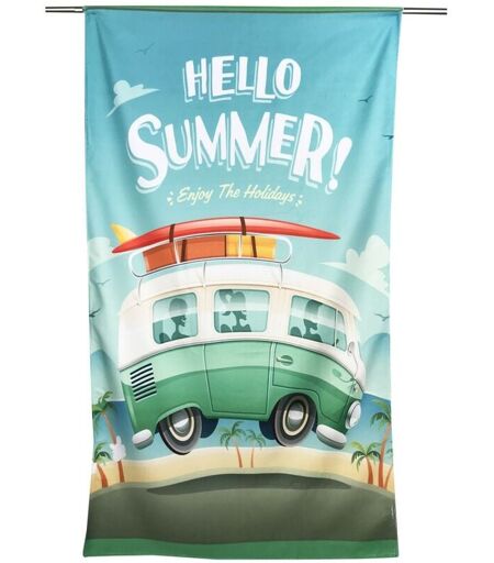 Fantastico telo mare in spugna ' HELLO SUMMER BUS ' nei toni del verde, raffigura un simpatico pulmino in stile Hippies che ha una sola ed unica meta.....le VACANZE. Telo molto morbido sulla pelle grazie alla sua morbida spugna cimata. • Prodotto in una misura grande di cm. 90x170 ed ha uno spessore di circa 5 mm. Di poco ingombro è l'ideale per chi viaggia e pratico da mettere nella borsa del mare. Composizione 100% poliestere. Il telo mare HELLO SUMMER BUS è un prodotto di qualità !! ...