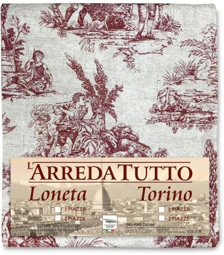 Tessuto stampato ' Toiles de Jouy ' nei toni del rosa rappresenta la famosa fantasia francese dove scene pastorali lo rendono davvero unico. Telo in tessuto di fibra naturale di ottima consistenza di produzione italiana ideale per tutti gli usi come copriletto, copridivano, telo arredo, copritutto, tessuto per rivestimento, tessuto da tenda, tessuto per tovaglia, etc. È costruito in tessuto molto morbido ed è molto consistente, è rifinito con orlo ed ha colori super resistenti che durano nel tempo anche dopo innumerevoli lavaggi. È disponibile in 2 differenti misure: • Singolo 1piazza cm. 170x280 • Matrimoniale 2 piazze cm. 260x280 Composizione tessuto 70% cotone e 30% poliestere, lavabile in lavatrice. Ottima resistenza al lavaggio !!! È un prodotto di qualità !!! ...