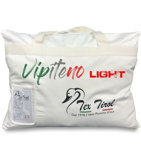 Piumino d'oca ' Vipiteno Light ' imbottito con 100 % piumino d'oca, (la parte più pregiata dell'oca), pesa solamente 500 grammi. Grazie a questo piumino ' LIGHT ' da oggi potrai utilizzare il tuo sacco anche nella stagione primaverile - estiva, infatti è studiato per conferire il giusto tepore al tuo corpo in questo periodo. Trapuntatura a cassettoni chiusi in modo da non perdere assolutamente piuma e mantenere uniforme il peso. Grazie alla composizione 100% Piumino d'oca Europa, ti sembrerà di dormire avvolto dentro una piuma perchè risulta essere morbido e leggerissimo. • Disponibile nella misura matrimoniale 2 piazze cm. 250x200 - peso 0,500 kg. Composizione tessuto 100% cotone-005 bianco. Indice di calore 2** LIGHT che indica il giusto peso per la stagione primavera-estate, Grado 2: 4,5 Tog - 6 Tog (ideale per una temperatura mite o tendenzialmente calda, dai 21° gradi in su) Il piumino d'oca è lavato e sterilizzato. Secondo il d.p.r.n. 845 del 23/1/75 e d.m. 10/11/76 a norma di ...