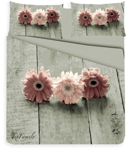 Copripiumino in morbida microfibra 100% disegno ' GERBERA ROSA '. Fantasia dal gusto molto fine e delicato dove gerbere rosa si appoggiano su un fondo di legno nei toni del grigio. Donati il piacere di essere coccolato in questo morbido copripiumino in microfibra manopesca !!! Mantiene intatte le sue qualità anche dopo innumerevoli lavaggi. Il set è così fornito: • Singolo 1 piazza 1 sacco mis. cm. 155x200 più patella e 1 federa cm. 50x80 oppure • Matrimoniale 2 piazze 1 sacco mis. cm. 255x200 più patella 2 federe cm. 50x80 Composizione 100% microfibra di poliestere, è un prodotto di qualità !!! ...