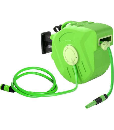 Durhand Outsunny Rullo Avvolgitubo a Parete con Riavvolgimento Automatico 15m, Portatile, Pratico per Giardino e Terrazzo Aosom