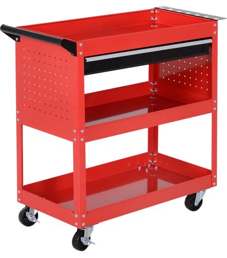 Durhand Carrello Portautensili da Officina Multiuso a 3 Ripiani in Acciaio Rosso per Garage e Laboratorio 70x35x75.5cm Aosom