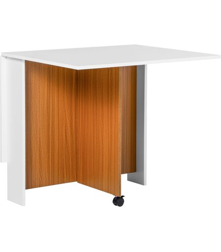 Homcom Tavolo Pieghevole da Pranzo con Ruote, Tavolino Pieghevole salvaspazio, Bianco e Legno, 120x80x73cm Aosom