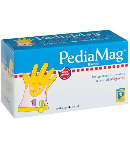 Gli integratori non sostituiscono un'alimentazione equilibrata e variegata e uno stile di vita sano. PediaMag flaconi è un integratore alimentare di magnesio, con fruttosio ed edulcorante. Il magnesio contribuisce all'equilibrio elettrolitico, al normale funzionamento del sistema nervoso ed alla normale funzione muscolare. Ingredienti:Acqua, fruttosio, L-magnesio pidolato, magnesio gluconato, succo arancia, magnesio citrato; agente acidificante: acido citrico; conservanti: potassio sorbato, sodio benzoate; edulcorante: sucralosio. Senza glutine. Naturalmente privo di lattosio. Valori medi per 100 ml per 1 flacone per 2 flaconi %VNR*/dose max Magnesio 800 mg 80 mg 160 mg 42,7% *Vnr: Valori Nutritivi di Riferimento. Modo d'uso:Si consiglia di assumere 1 o 2 flaconi al giorno, o secondo parere medico. Agitare prima dell'uso e assumere il contenuto del flacone per via orale. Avvertenze:Non superare la dose giornaliera raccomandata. Tenere il prodotto al di fuori della portata dei bambini al di sotto dei tre anni di etá. Per l'uso del prodotto si consiglia di sentire il parere del medico. Conservazione:Conservare in un luogo fresco e asciutto. Si prega di fare riferimento, se necessario, ad ulteriori istruzioni riportate sulla confezione. Contenuto netto:Confezione da 10 flaconi da 10 ml. Contenuto netto: 100 ml. Produttore:Pediatrica SrlVia Del Vigna, 26457121, Livorno, LIItalia ...
