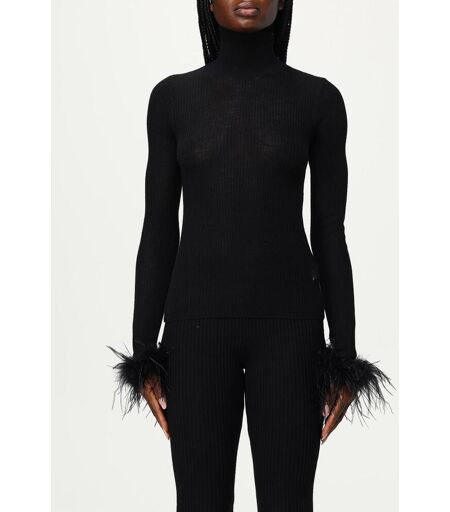 Blumarine Maglia a dolcevita con piume Nero Taglia XS